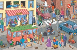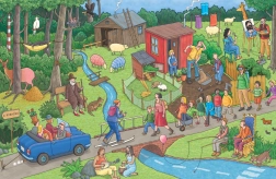 Ilustrované scény z domácnosti sú hore nohami a praskajú vo švíkoch množstvom detailov. Deti budú hľadať, čo je zle, a rozprávať vlastné príbehy.