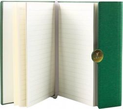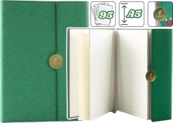 Tvrdé, odolné dosky v zelenom prevedení chránia obsah a dodávajú zápisníku profesionálny štýl na každodenné používanie.
