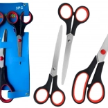 Univerzálna sada nožníc zahŕňa tri páry s rôznymi veľkosťami: veľké (20 cm) na kartón a hrubšie materiály, stredné (14 cm) na bežné kancelárske práce a malé (12,5 cm) na detailné a presné strihy. Kvalitná nehrdzavejúca oceľ zaručuje dlhú životnosť a čisté rezy bez strapkania.