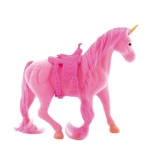 Roztomilý jednorožec s hrivou a chvostom, ktoré možno česať, poteší každé dieťa od 3 rokov. Plyšový povrch (fleece), sedlo na hranie a tri farebné varianty z neho robia ideálny darček pre milovníkov koní a magických bytostí.