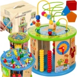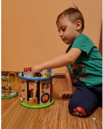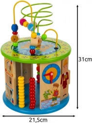 Táto kreatívna kocka je navrhnutá pre malých objaviteľov a ponúka 11 rôznych aktivít na všetkých stranách vrátane hornej plochy. Deti si precvičia rozpoznávanie farieb a tvarov, naučia sa počítať na počítadle, pochopia princíp hodín a zlepšia koordináciu oko-ruka vďaka bludisku s korálikmi a ďalším interaktívnym prvkom.