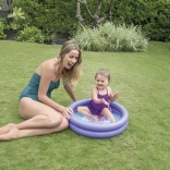 Ľahký a skladný detský bazénik s priemerom 61 cm a výškou 15 cm je ideálny na balkón, terasu aj záhradu. Má dve nafukovacie komory, je z odolného vinylu a vďaka veselému dizajnu poteší deti od 1 do 3 rokov. Jednoduché rozloženie a zbalenie, objem cca 17 l pri výške hladiny 8 cm, vrátane opravnej sady.