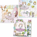 Obsah balenia zahŕňa 8 dvojitých kariet, rozdelených do 2 sád po 4 karty, s klopami a jedinečnými 3D výrezmi, ktoré lákajú k objavovaniu.