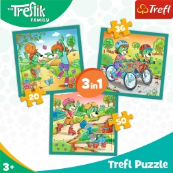 Táto sada progresívnych puzzle s motívom Treflíkov prináša tri obrázky rôznej náročnosti, takže deti môžu plynule prechádzať od jednoduchšej skladačky k náročnejšej. Každé puzzle má kompaktný rozmer 20 × 19,5 cm, ideálny na pohodlné skladanie na stole aj na cestách.
