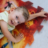 Penové puzzle Lev kráľ TREFL je ideálnou voľbou pre bezpečné a kreatívne hranie. Špeciálny materiál podobný hrubej karimatke zabezpečuje mäkkosť, odolnosť a jednoduchú údržbu. Deti si užijú nielen skladanie obľúbených motívov z filmu Lev kráľ, ale aj stavanie kociek či tunelov.