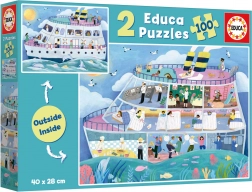 Dvojica kvalitných puzzle od značky EDUCA prináša hravé motívy výletnej lode zvonku aj zvnútra. Každé puzzle má 100 pevných dielikov, ktoré presne zapadajú a vytvárajú obrázok s rozmerom približne 40 × 28 cm. Ideálna voľba pre deti, ktoré milujú objavovanie detailov a príbehov ukrytých v obrázkoch.