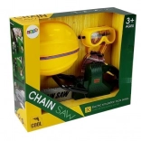 Sada zahŕňa zelenú motorovú pílu, žltú ochrannú prilbu, okuliare a farebné rukavice pre záhradné účely. Každý prvok je navrhnutý, aby vyzeral čo najrealistickejšie a zároveň je úplne bezpečný pre deti.