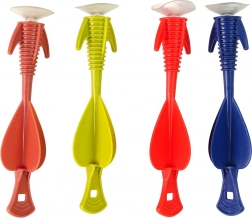 Prak je vyrobený z odolných materiálov schválených pre bezpečné použitie a vybaven pohodlnou penovou rukoväťou. Súčasťou balenia sú štyri rôznofarebné gumové strely, ktoré zabezpečujú bezpečnú hru vďaka prísavkám.