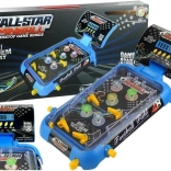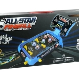 Hra je určená pre všetky deti staršie ako 4 roky. Je napájaná 3 kusmi LR14 (C) 1,5 V batérií, ktoré nie sú súčasťou balenia. Hračka je vyrobená z robustného a odolného plastového materiálu. Jej konštrukcia je zbavená ostrých hrán a častí, takže zábava bude pohodlná a predovšetkým bezpečná. Sada na pinball spĺňa normy EN 71 a je zabalená v tmavej krabici zdobenej športovým motívom. V hornej časti krabice je umiestnené madlo, ktoré uľahčuje prenášanie hračky. Je to senzačná varianta darčeka pre dieťa, ktoré má rado výzvy.