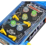 Dizajn hračky flipper vyzerá ako zmenšená verzia klasického hracieho automatu. Pracovná plocha je spojená s dvoma nohami a počítadlom skóre, ktorého umiestnenie si hráč môže upraviť podľa svojich potrieb. Vďaka nohám je doska umiestnená v uhle umožňujúcom skvelú zábavu, rovnako ako vystrelenie guľôčky smerom nahor. Veľkou prednosťou hračky je jej dizajn, zdobený futbalovými motívmi. Modrý plášť hracej dosky je kombinovaný s tmavým pozadím, ktoré po zapnutí farebných svetiel vyzerá senzačne. Po napájaní hry batériami stlačte tlačidlo ON/OFF a potom vedľa neho tlačidlo START. Ak chcete pridať zvuky k vzrušeniu z hry, jednoducho stlačte tlačidlo pre hudbu. Posledné je tlačidlo označené ako TOP SCORE, po ktorého stlačení sa zobrazí najvyššie dosiahnuté skóre. Veríme, že táto funkcia vás môže motivovať, aby ste zo seba pri ďalšej hre vydali ešte viac. V prípade potreby možno toto počítadlo vynulovať a hru spustiť od začiatku.