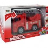 Toto červené hasičské auto 1:20 poteší každého malého hasiča. Rebrík možno zdvíhať a spúšťať, predlžovať aj skracovať a na jeho konci je plošina s hadicou. Po naplnení nádržky vodou a stlačení tlačidla auto skutočne strieka vodu, čo prináša maximálne realistickú zábavu. Nechýbajú ani svetelné a zvukové efekty pre ešte väčšiu atmosféru zásahu.