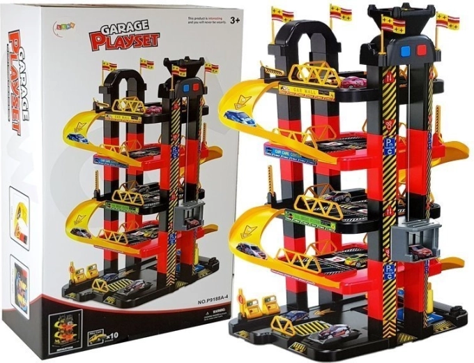 Táto viacúrovňová plastová garáž s piatimi poschodiami prináša realistickú hru s autami doma aj vonku. Deti sa naučia základy dopravných pravidiel, precvičia si jemnú motoriku, koordináciu aj predstavivosť. Poschodia sú prepojené kľukatými rampami a ovládateľným výťahom so svetielkami, ktorý vyváža autíčka hore a dole.