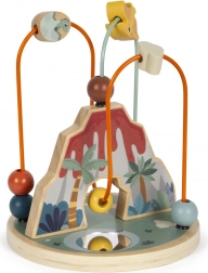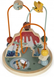 Tento korálkový labyrint s motívom dinosaurov predstavuje ideálnu hračku pre rozvoj detí. Učí ich koordináciu ruka-oko a stimuláciu kreativity, zatiaľ čo zaujme svojou originálnou postavou sopečného vulkánu. Hračka obsahuje dve farebné slučky s rôznorodými korálkami a centrálne zrkadlo umiestnené na základni, takže všetko môže byť videné z iného uhla.