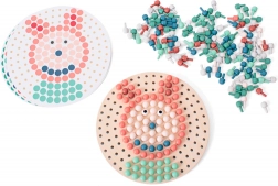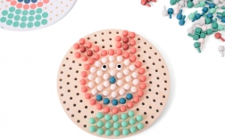 Táto drevená mozaiková hra rozvíja zručnosti detí hravou formou. Vďaka pestrej palete kolíkov môžu deti skladať obrázky podľa 6 obojstranných šablón alebo tvoriť vlastné originálne vzory. Pevná drevená doska a kvalitné materiály zaručujú dlhú životnosť a bezpečné používanie.