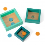 - 3 terče (9×9 cm, 7×7 cm, 5×5 cm), 2 odpaľovacie zariadenia (cca 13 × 9 × 4 cm), 10 žetónov
