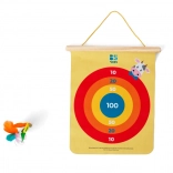 Táto klasická šípkarská hra v detskom podaní prináša bezpečné a chytľavé súperenie doma aj v škôlke. Obojstranný závesný terč (40 × 31 cm) ponúka dve herné plochy pre viac variantov hry a dlhšiu zábavu. Farebné perové šípky s magnetickou špičkou sa ľahko prichytia na terč a sú vhodné pre malých hráčov.