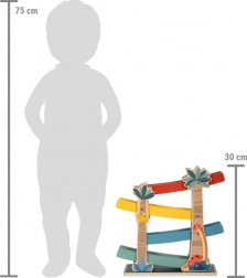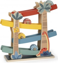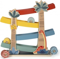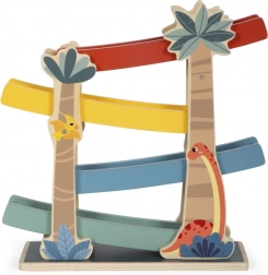 Táto drevená dráha s motívom dinosaurov je ideálna interaktívna hračka pre deti. Spoločne s rôznofarebnými vzorovanými diskami, ktoré sa kotúľajú po rampách, prináša zábavnú formu učenia o pohybe a gravitácii. Vlastnosti produktu: