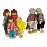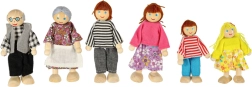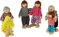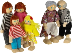 Roztomilá drevená rodinka pre domček pre bábiky prináša 6 precízne spracovaných postavičiek v troch generáciách – starí rodičia, rodičia a deti. Vďaka ohybným končatinám ľahko sedia, stoja aj ležia, farebné oblečenie podporuje kreatívnu hru a rozvoj jemnej motoriky aj sociálnych zručností. Kompatibilná s väčšinou domčekov pre bábiky.