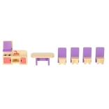 Doprajte deťom nekonečnú porciu fantázie s kompletnou sadou drevených miniatúr pre celé domáce vybavenie. Nábytok v moderných fialových tónoch krásne vynikne v každom domčeku a vďaka pevnému spracovaniu zvládne každodenné hranie.