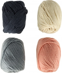 Objavte radosť z tvorenia so súpravou štyroch priadzí v starostlivo zladených odtieňoch (krémová, sivá, tmavomodrá, marhuľková). Vďaka príjemnej zmesi polyesteru a akrylu sa priadza neplstí, menej sa zamotáva a dobre kĺže po ihliciach aj háčiku. Farby sa skvele kombinujú pre kontrastné aj harmonické vzory.