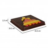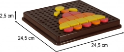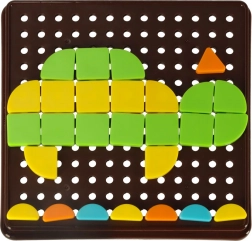 Táto mozaiková skladačka prináša deťom nekonečné možnosti tvorby. Farebné geometrické dieliky sa skladajú do perforovanej dosky a deti môžu vytvárať vlastné obrázky alebo sa inšpirovať priloženými kartami. Hra prirodzene rozvíja koordináciu oko-ruka, zrakové vnímanie a schopnosť rozlišovať farby a tvary.
