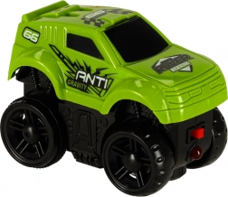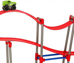 Zelené autíčko v sade je špeciálne navrhnuté na prekonávanie extrémnych trás. Vďaka napájaniu dvoma batériami AA sa samostatne pohybuje po dráhe bez akýchkoľvek ťažkostí.