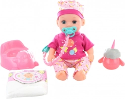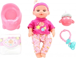 Súčasťou balenia je fľaštička, plienka, nočník a cumlík pre kompletné ošetrovateľské zážitky.