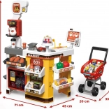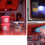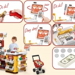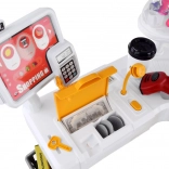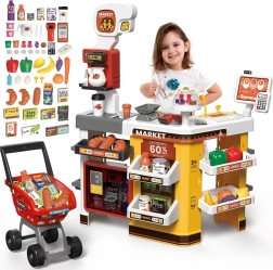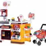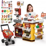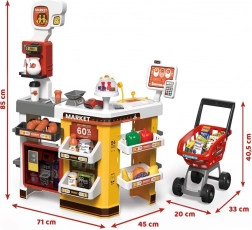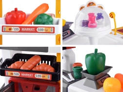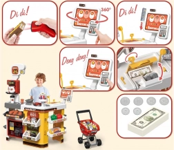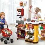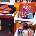 Supermarket pre deti je kompletný herný set, ktorý obsahuje mnoho zábavných prvkov. Vybavený cukrárňou, kávovarom, chladničkou a nákupným vozíkom, tento herný set napodobňuje skutočný supermarket. Pokladňa je funkčná, vydáva realistické zvuky a svetlá, čo pridáva na autentickosti hry. Pre ešte väčší zážitok je tu osvetlená chladnička so simuláciou hmly, podobne ako v skutočných mrazničkách.