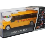 Veľkou prednosťou autobusu je precízne spracovanie, ktoré spočíva v dizajne zohľadňujúcom aj tie najmenšie detaily, a tiež pevný a odolný materiál, odolný voči častému hraniu. Doplnkové svetelné a zvukové efekty. Vo vnútri autobusu svietia zelené LED diódy a hrá priateľská hudba. Celé vozidlo je žlté s červeným nápisom Školský autobus. Cesta do školy s týmto autobusom sa dá počítať ako príjemná a zábava poteší aj vašich rovesníkov. Ďalším plusom sú otváracie predné a zadné dvere, všetci cestujúci môžu nastúpiť.