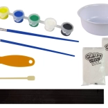 Obsahuje všetky potrebné pomôcky vrátane sadry, farieb, štetcov a foriem na dinosaury.