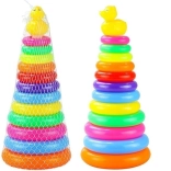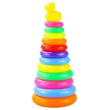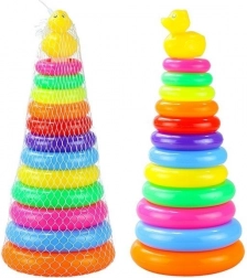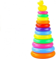 Pyramída z krúžkov je klasická hračka, ktorá teraz prichádza v nádherne farebnej verzii. Pomáha rozvíjať nielen motoriku a pohybové schopnosti dieťaťa, ale tiež koncentráciu, manuálne zručnosti, a poskytuje možnosť rozpoznávania veľkostí, triedenie podľa veľkosti, farebných odtieňov alebo podľa vlastných pravidiel a logiky. S touto farebnou hračkou, vyrobenou z bezpečného, mäkkého plastu, sa vaše dieťa môže baviť aj počas kúpania. Na vrchole pyramídy sa nachádza žltá kačička, ktorá ešte viac spestruje zábavu. Pyramída z krúžkov je investícia na roky, ktorá nielenže otvorí dieťaťu svet fantázie, ale tiež ho rozvinie na mnohých úrovniach.