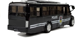 Čierne prevedenie s výraznými nápismi a priehľadnými oknami podčiarkuje realistický vzhľad. Vďaka voľne sa otáčajúcim kolesám a detailom, ako sú spätné zrkadlá, vyzerá autobus ako skutočné vozidlo. Po aktivácii sa rozsvietia svetlá a ozvú sa zvuky sirény, ktoré umocnia atmosféru akčnej hry.