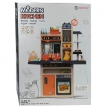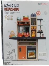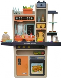 Táto moderná detská kuchynka zaujme pokojnou kombináciou oranžovej a krémovej farby a svojím dizajnom pripomínajúcim skutočnú domácu kuchyňu. Vďaka svetelným prvkom na varnej platni a realistickým zvukom varenia sa deti ponoria do role malého šéfkuchára. Praktické poličky, háčiky a priehradky pomôžu udržať poriadok a rozvíjať návyky organizácie.