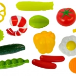 Sada plastových potravín v jasných farbách podporuje spoznávanie potravín a hru na prípravu jedál.