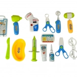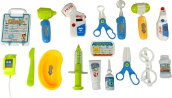 - Vozík/panel EKG, okuliare, stetoskop so zvukom, teplomer s reguláciou a podsvietením, otoskop so svetlom, tlakomer s nastavením a podsvietením, kladivko, injekčná striekačka, dentálne zrkadielko so svetlom, 2× chirurgické nožničky, skalpel, miska, imitácia dezinfekčného krému, imitácia očných kvapiek, imitácia dózy s liekmi, menovka lekára, karta pacienta