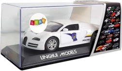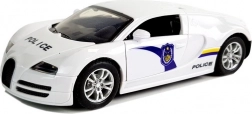 Staňte sa strážcom poriadku s týmto kompaktným policajným športiakom! Vďaka pohonu na spätné natiahnutie (pull-back), svetelným a zvukovým efektom a gumeným pneumatikám ponúkne dynamickú a bezpečnú zábavu. Biele prevedenie s modrými prvkami, nápisom POLICE a zatmavenými oknami dodáva autu skutočný policajný charakter.
