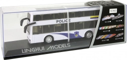 Urobte radosť malým milovníkom akcie štýlovým dvojposchodovým policajným autobusom. Vďaka napínaciemu pull-back pohonu sa autobus po natiahnutí sám rozbehne, pričom svetelné a zvukové efekty dodajú hre realistickú atmosféru. Biely dizajn s modrými detailmi, nápisom POLICE a emblémami pôsobí verne ako skutočné služobné vozidlo.