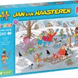 Jumbo Puzzle Jan van Haasteren Junior vás prenesie do sveta plného ilustrácií, ktoré sú plné humoru a detailov. Preskúmajte každý kúsok, nájdite známe znaky ako žraločia plutva a unikátne detaily, ktoré si obľúbia všetci fanúšikovia Jana van Haasterena.