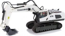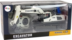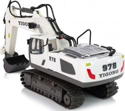 Toto diaľkovo ovládané rýpadlo v bielej farbe s čiernymi detailmi verne napodobňuje skutočný stavebný stroj. Vďaka technológii 2,4 GHz sa vyhnete rušeniu a užijete si plynulé ovládanie. Ovládač s dvoma joystickmi umožňuje jazdu vpred/vzad a doprava/doľava, otáčanie kabíny a presnú prácu s lyžicou.