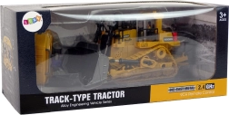 Detailné prevedenie s pásmi, kabínou a prednou radlicou. Kombinácia plastu a kovu zvyšuje odolnosť pri hre.