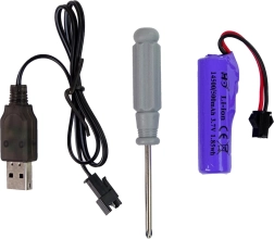 V balení nájdete nabíjateľnú batériu 3,7 V 500 mAh, USB nabíjačku a nástroj na údržbu. Stačí vložiť AA batérie do ovládača a vyraziť.