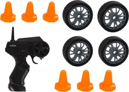 Súčasťou balenia sú vymeniteľné kolesá na drift aj klasickú jazdu a kužele na stavbu vlastných tratí. Set obsahuje aj akumulátor 3,7 V a USB nabíjačku, takže môžete vyraziť takmer hneď po rozbalení.