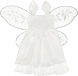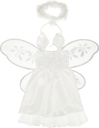Kostým je doplnený o brokátové krídla s trblietavou úpravou, ktoré dodávajú vzhľad anjela.