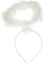 Súprava obsahuje aj plastovú čelenku s mäkkým, pierkovým materiálom tvoriacim aureolu.