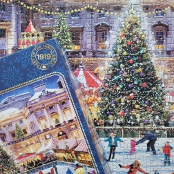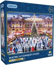 Puzzle „Korčuľovanie pri Somerset House“ od prestížnej značky Gibsons je stelesnením zimnej pohody a kúzla Vianoc. Na fascinujúcej ilustrácii Richarda Macneila môžete vidieť korčuliarov kĺzať sa po klzisku, ktoré je krásne osvetlené vianočnými svetlami a obklopené stánkami s horúcimi nápojmi a dobrotami. Tento motív prinesie do vášho domova atmosféru londýnskej vianočnej rozprávky.