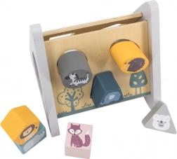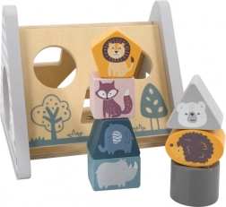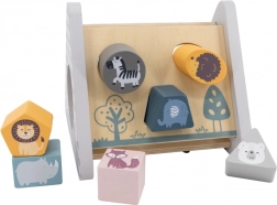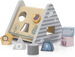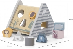 Drevený sorter POLARB v podobe stabilnej „A“ pyramídy ponúka rôzne výrezy na vkladanie farebných kociek so zvieratkami. Deti triedia tvary a farby, učia sa logike a trpezlivosti a zažívajú veľa zábavy pri objavovaní správnych otvorov.