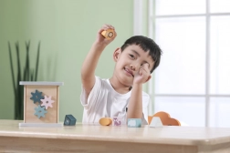 Každý dielik má svoj otvor – deti rozvíjajú logické myslenie, rozpoznávanie tvarov a trpezlivosť pri hľadaní správnej zhody.