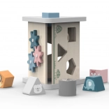 Objavte hravú vzdelávaciu hračku pre najmenších: drevený triedič tvarov v tvare pyramídy s jemnými pastelovými farbami a zvieracími ilustráciami. Deti si precvičia rozpoznávanie tvarov, jemnú motoriku a koordináciu oko–ruka, zatiaľ čo bezpečné drevené dieliky s netoxickými farbami zaistia radosť aj pokoj rodičom.