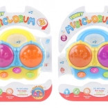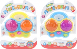 Zábavné plastové bubienky pre malé deti, ktoré po stlačení tlačidiel svietia a vydávajú veselé zvuky. Ideálna hračka na rozvoj rytmu a motoriky, s napájaním na 2 AAA batérie (súčasť balenia).
