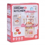 Štýlová detská kuchynka s reálnymi zvukmi a LED osvetlením horákov prináša deťom od 3 rokov hodiny zábavy. Súčasťou je funkčný drez s kohútikom, otočné gombíky s cvakaním, otvorené skrinky a zásuvka s triediacou hádankou odpadu. V balení nájdete 10 doplnkov vrátane hrnca, panvice a potravín. Bezpečné prevedenie bez ostrých hrán podporuje fantáziu a jemnú motoriku.
